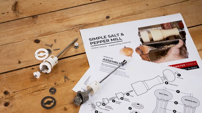 Learn how to turn a simple salt and pepper mill with this beginners woodturning project. Featuring video instruction and detailed plans, this course will guide you through the process of selecting your timber to turning and final assembly.
